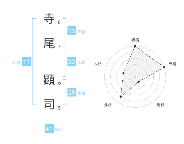 寺尾 顕司さんの総格は41画の5点!