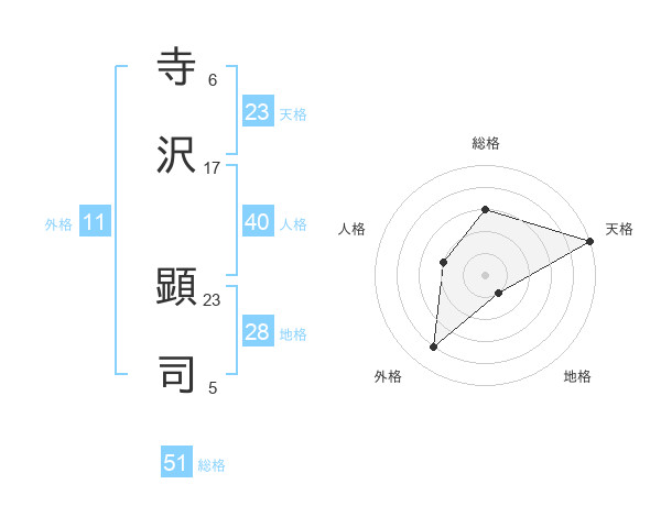 寺沢 顕司さんの総格は51画の3点!