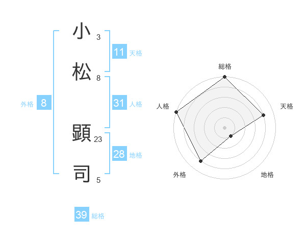 小松 顕司さんの総格は39画の5点!