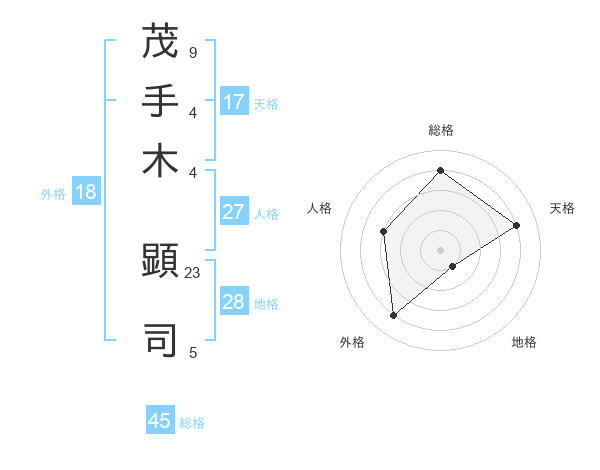 茂手木 顕司さんを姓名の画数から五運を鑑定