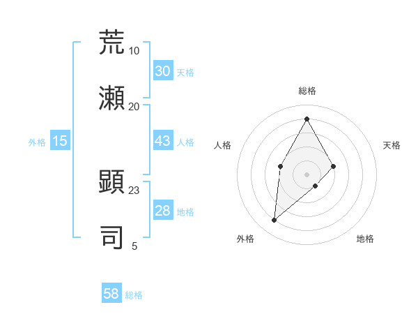 荒瀬 顕司さんの総格は58画の4点!