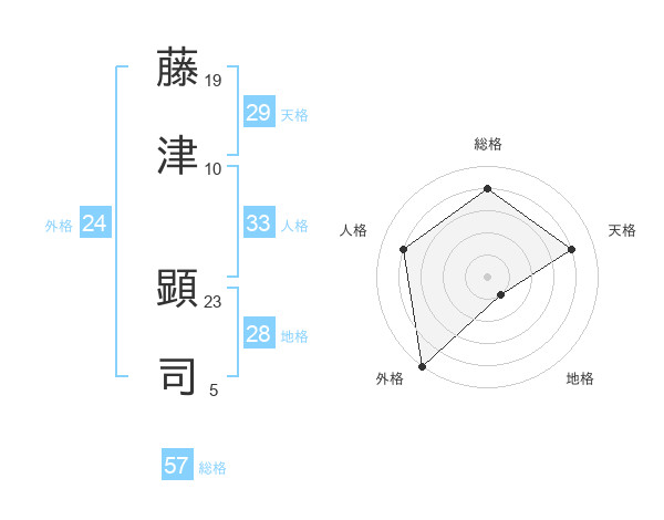 藤津 顕司さんを姓名の画数から五運を鑑定