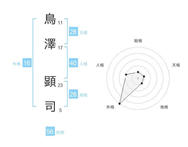 鳥澤 顕司さんを姓名の画数から五運を鑑定