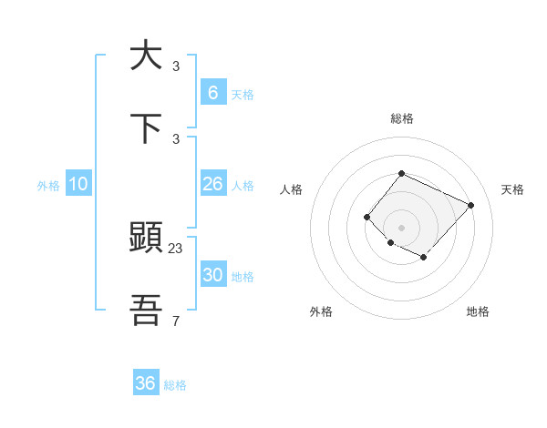 大下 顕吾さんを姓名の画数から五運を鑑定