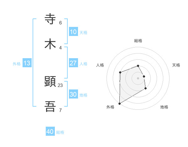 寺木 顕吾さんの外格は13画の5点!