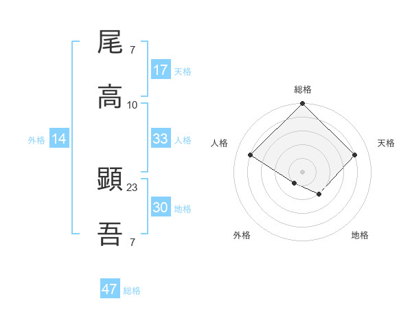 尾高 顕吾さんを姓名の画数から五運を鑑定