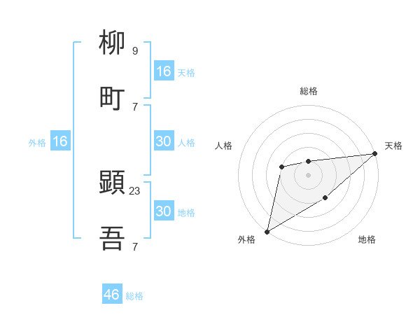 柳町 顕吾さんを姓名の画数から五運を鑑定