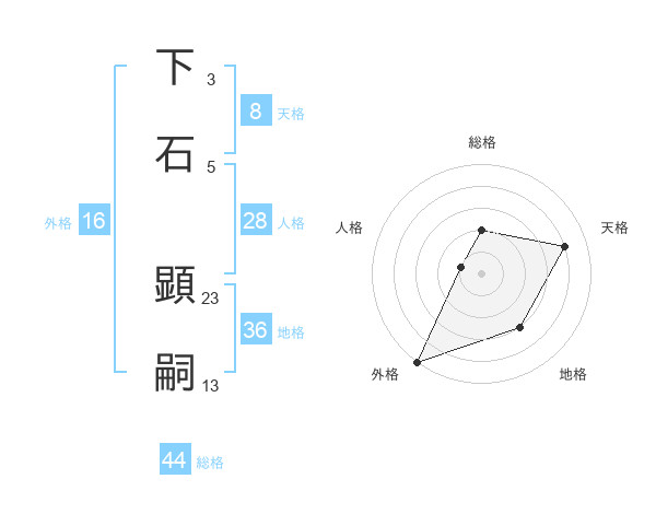 下石 顕嗣さんの外格は16画の5点!