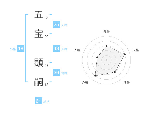 五宝 顕嗣さんの総格は61画の3点!