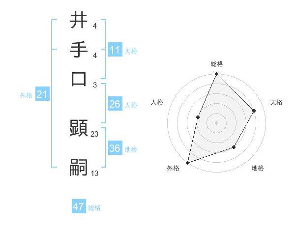 井手口 顕嗣さんを姓名の画数から五運を鑑定