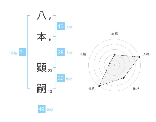 八本 顕嗣さんの天格は13画の5点!