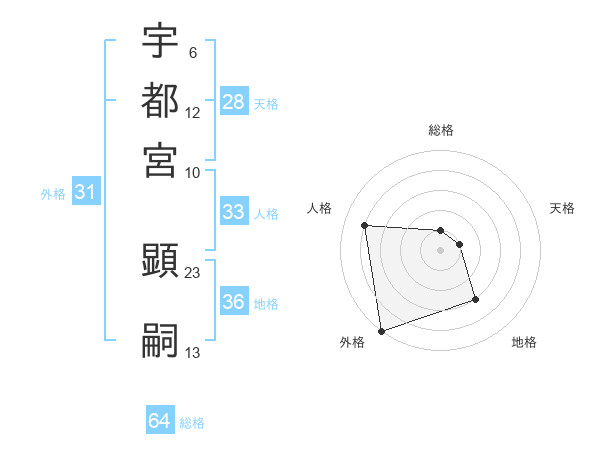 宇都宮 顕嗣さんを姓名の画数から五運を鑑定