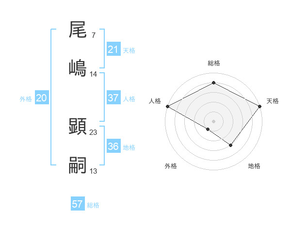 尾嶋 顕嗣さんを姓名の画数から五運を鑑定