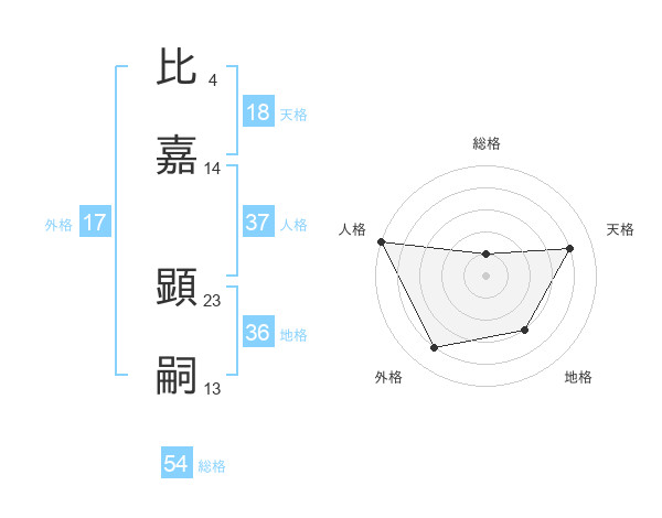 比嘉 顕嗣さんの総格は54画の1点!