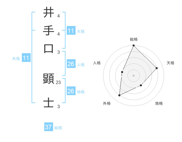 井手口 顕士さんを姓名の画数から五運を鑑定