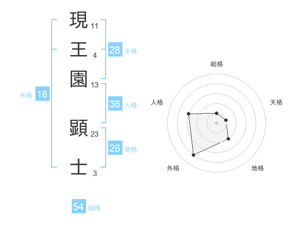 現王園 顕士さんを姓名の画数から五運を鑑定