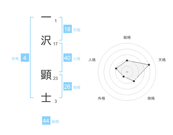 一沢 顕士さんを姓名の画数から五運を鑑定