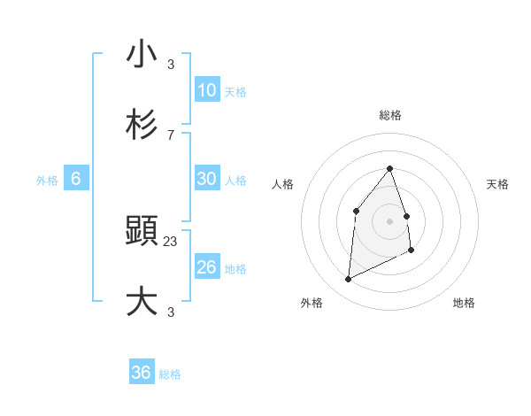 小杉 顕大さんを姓名の画数から五運を鑑定
