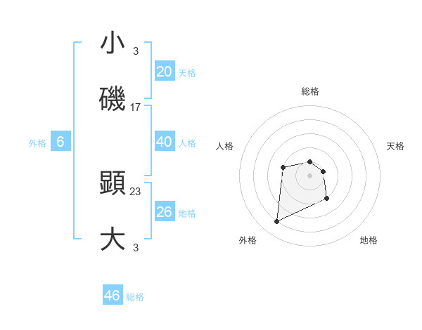 小磯 顕大さんの総格は46画の1点!