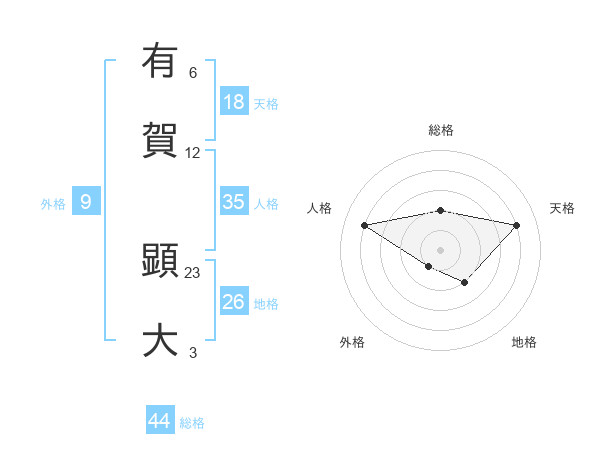 有賀 顕大さんを姓名の画数から五運を鑑定