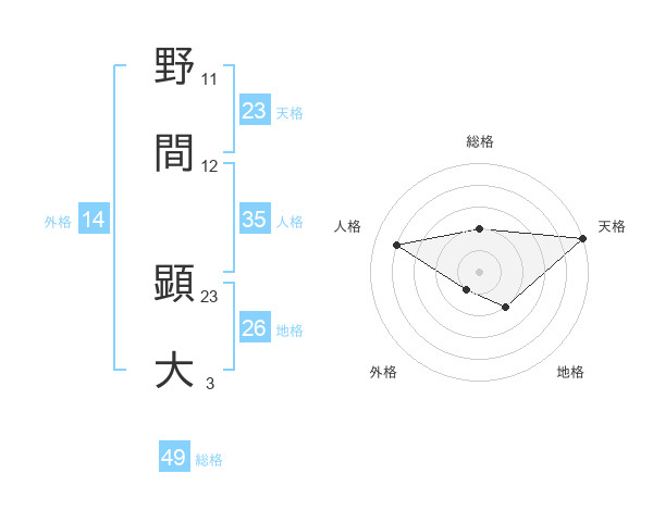 野間 顕大さんの総格は49画の2点!