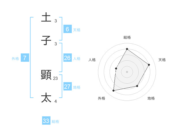 土子 顕太さんの総格は33画の4点!