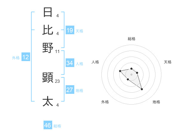 日比野 顕太さんを姓名の画数から五運を鑑定