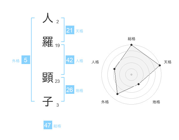 人羅 顕子さんの総格は47画の5点!