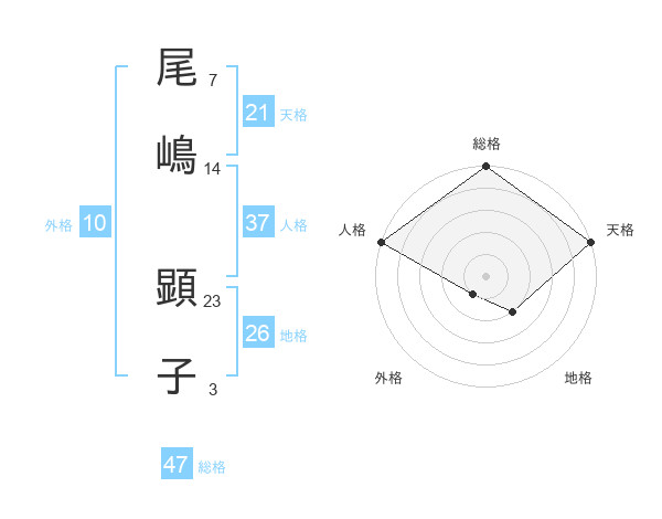 尾嶋 顕子さんの総格は47画の5点!