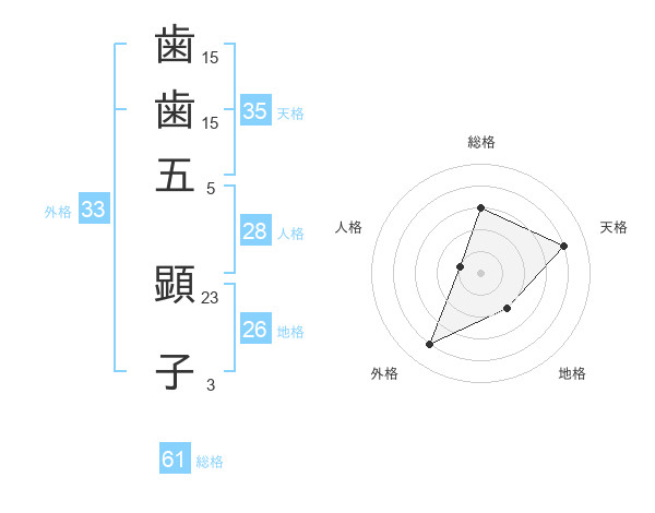 歯歯五 顕子さんの外格は33画の4点!