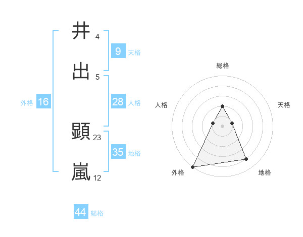 井出 顕嵐さんを姓名の画数から五運を鑑定