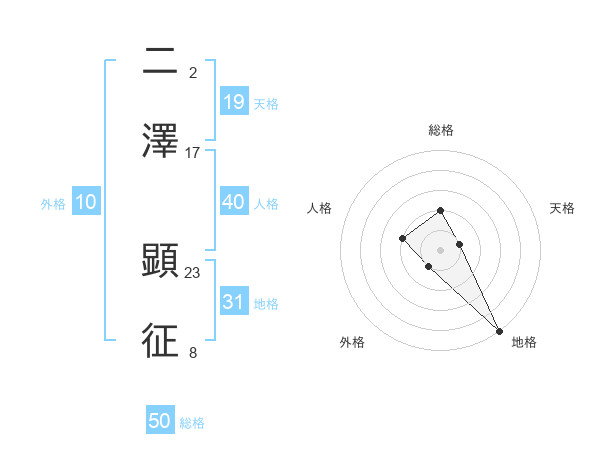 二澤 顕征さんを姓名の画数から五運を鑑定