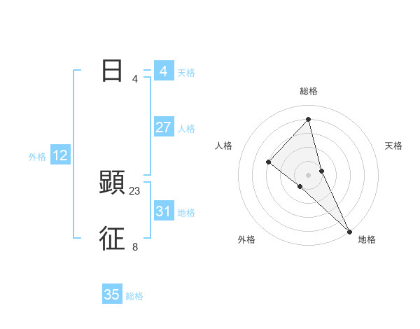 日 顕征さんの総格は35画の4点!