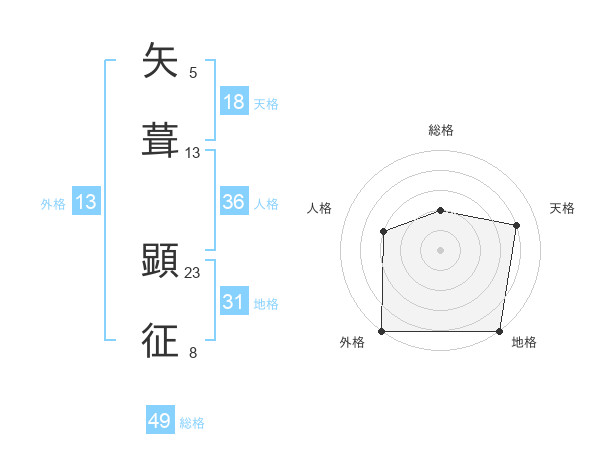 矢葺 顕征さんを姓名の画数から五運を鑑定