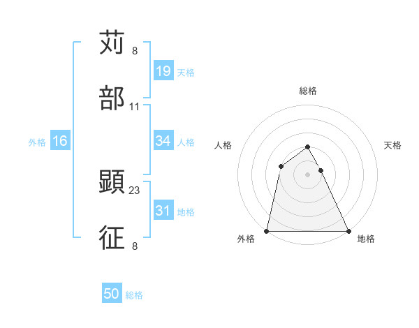 苅部 顕征さんの総格は50画の2点!