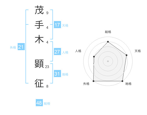 茂手木 顕征さんを姓名の画数から五運を鑑定