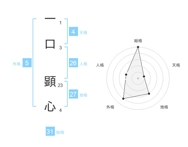 一口 顕心さんの総格は31画の5点!