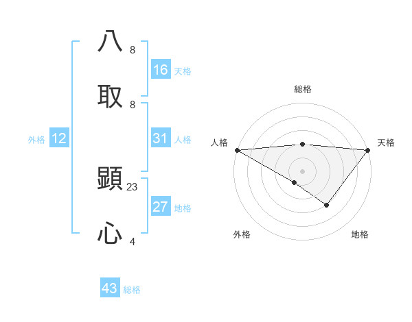 八取 顕心さんの外格は12画の1点!