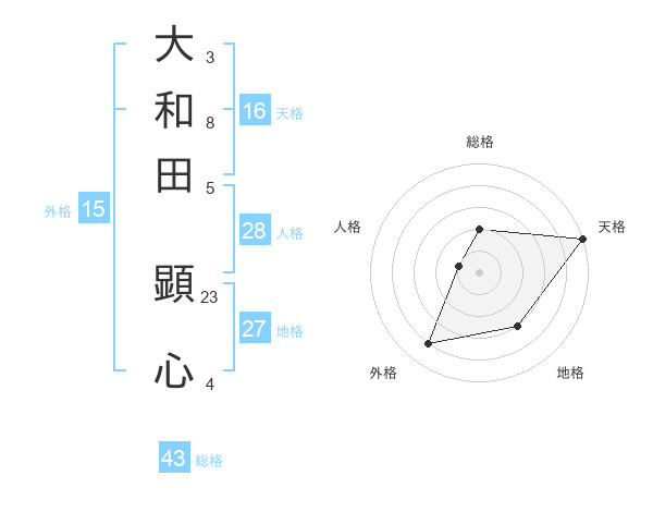 大和田 顕心さんの総格は43画の2点