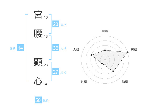 宮腰 顕心さんの総格は50画の2点!