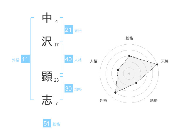 中沢 顕志さんの総格は51画の3点!