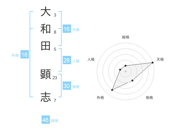 大和田 顕志さんの総格は46画の1点!