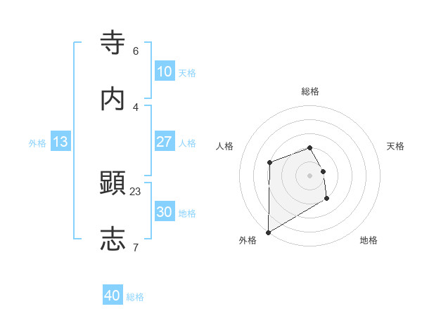 寺内 顕志さんの外格は13画の5点!