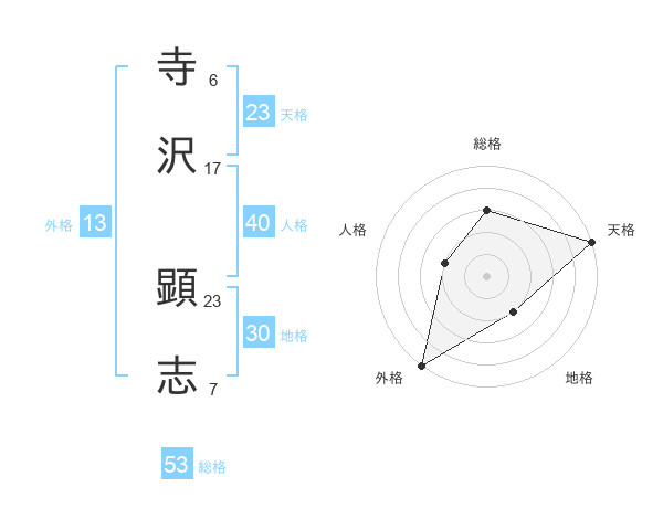 寺沢 顕志さんの天格は23画の5点!