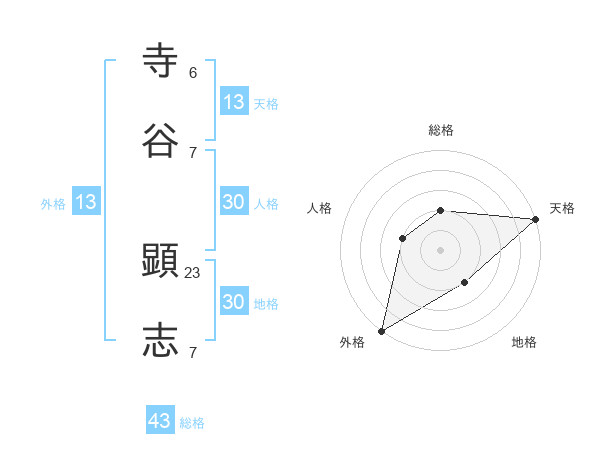 寺谷 顕志さんの外格は13画の5点!