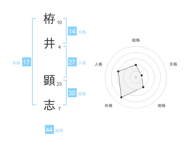 栫井 顕志さんの総格は44画の2点!