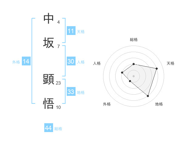 中坂 顕悟さんを姓名の画数から五運を鑑定