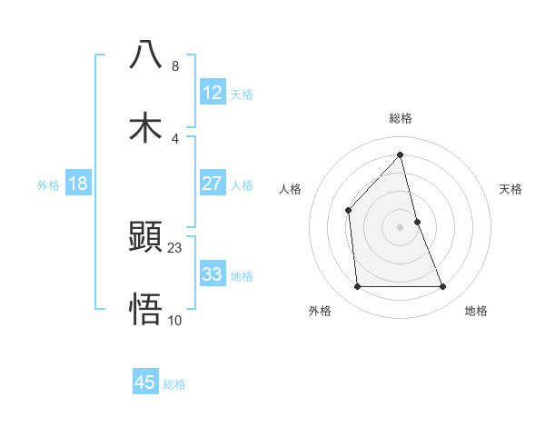 八木 顕悟さんの総格は45画の4点!