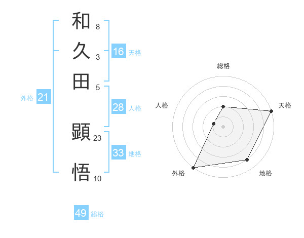和久田 顕悟さんを姓名の画数から五運を鑑定