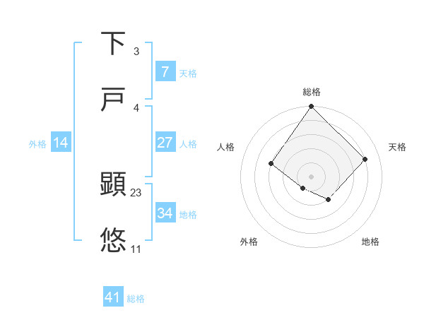 下戸 顕悠さんを姓名の画数から五運を鑑定
